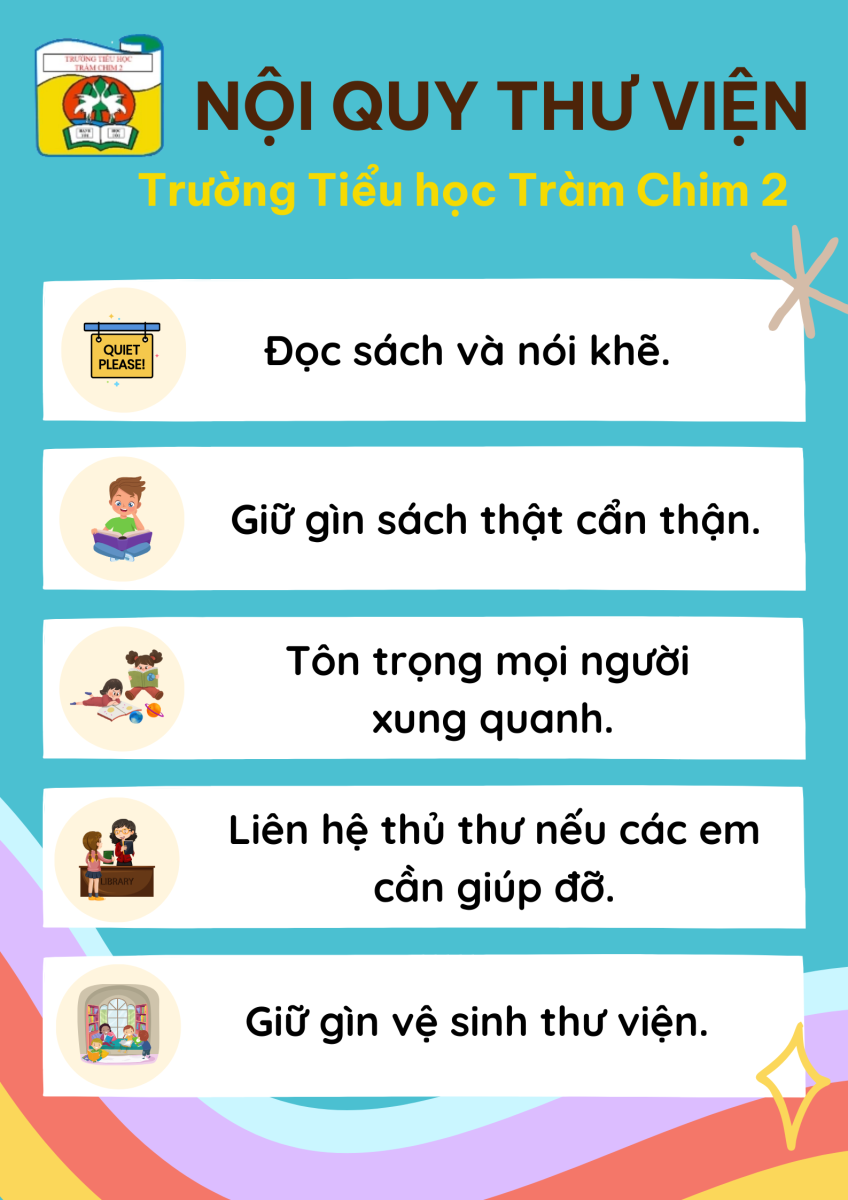 Trong thư viện của trường Tiểu học, mỗi học sinh đều phải giữ cho không gian yên tĩnh, tôn trọng sách và mọi người xung quanh. Việc trả sách đúng hạn và tình thần tự học là vô cùng quan trọng. Các em học sinh sẽ được hòa mình vào thế giới của tri thức, nơi nảy mình giữa những trang sách màu hồng và xanh, mang theo mùi của giấy in và cây viết mới mỗi khi bước chân vào.